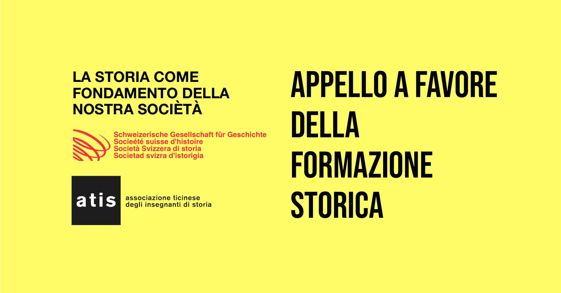 Con questa affermazione programmatica si apre l’appello a favoredella formazione storica redatto dalla Commissione «Formazione storica» della Società Svizzera di Storia e condiviso pienamente dall'associazione ticinese degli insegnanti di storia.